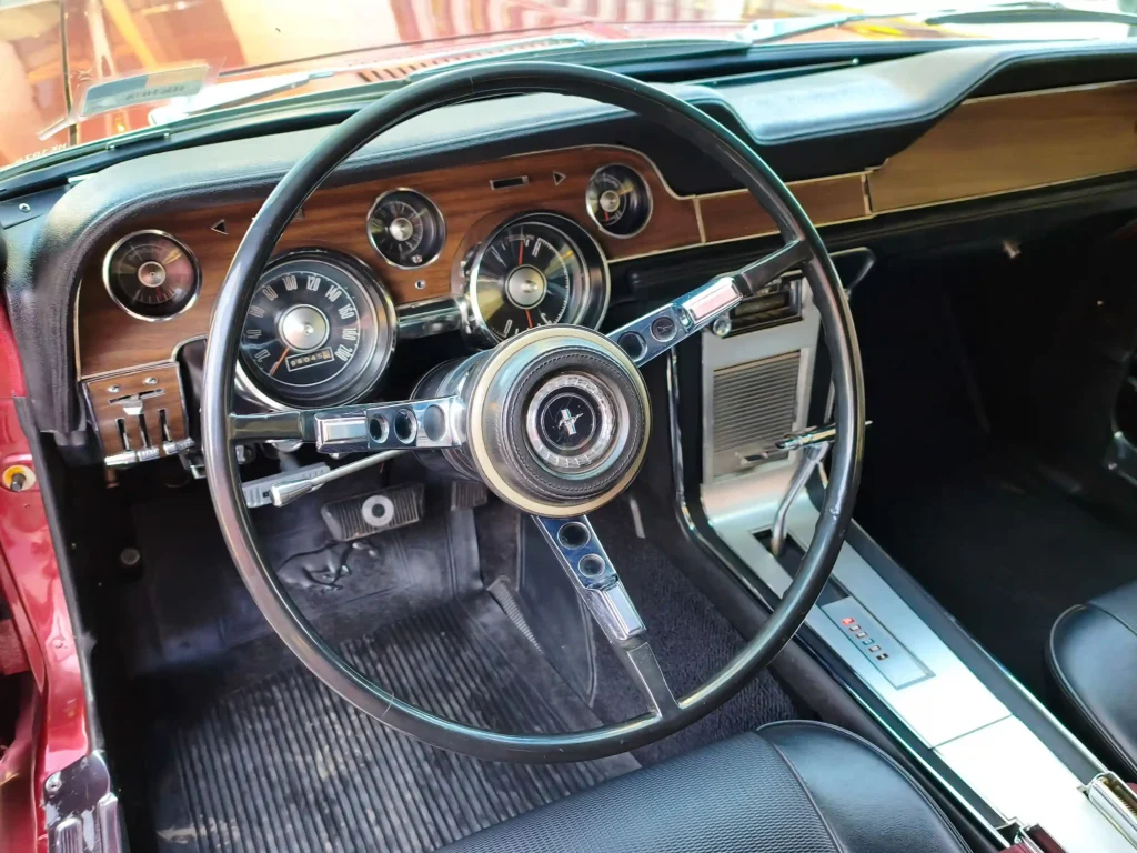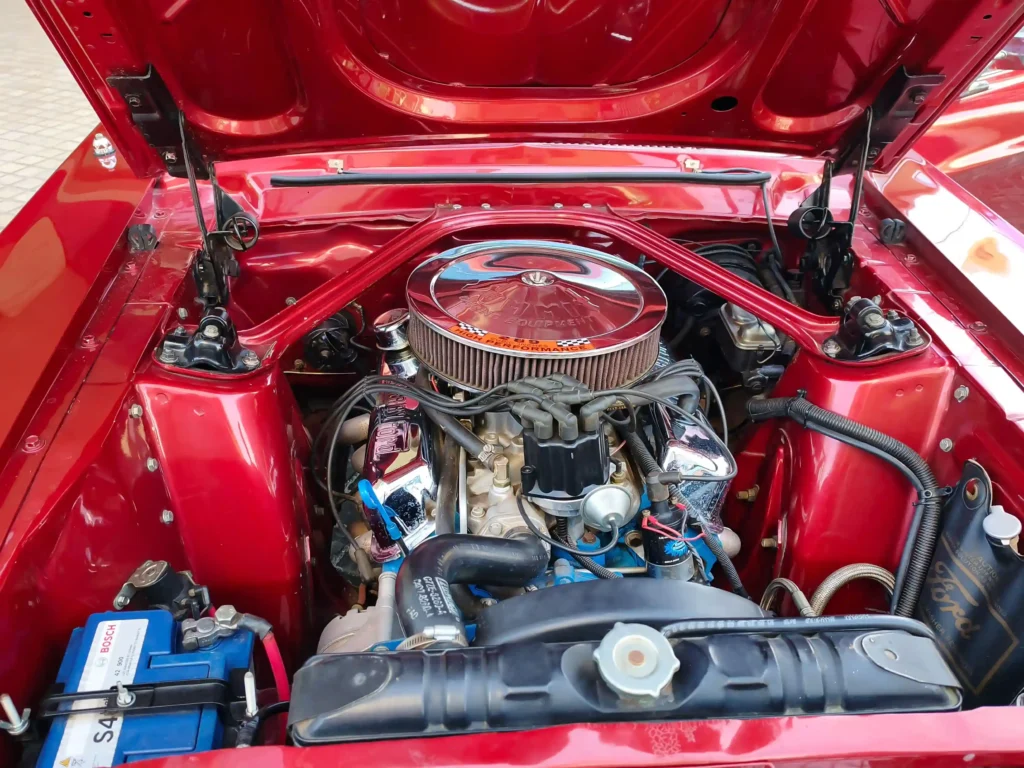 Bajo el capó, el legendario motor Ford Mustang Hard Top V8 289 ofrece un equilibrio perfecto entre carácter, sonido y confiabilidad. Mecánicamente sólido, el V8 arranca con ese inconfundible ronroneo grave que anticipa el placer de cada trayecto. Con su transmisión automática, ofrece una experiencia relajada pero igualmente emocionante: deslizarse por la ciudad o salir a carretera abierta se convierte en un ritual. Cada semáforo es una escena, cada estacionamiento una pequeña exposición improvisada.